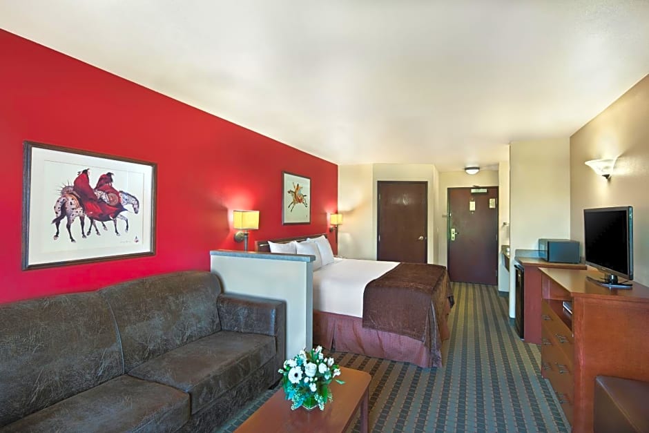 This suite offers a seating area, a TV, and both WiFi and wired internet access. A refrigerator, microwave, coffee machine, and ironing facilities are provided.
